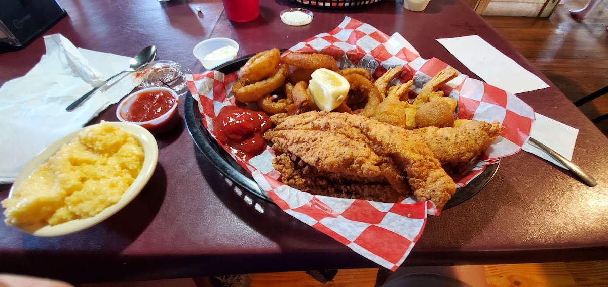 The menu mirrors this inviting atmosphere, showcasing a range of dishes that satisfy both seafood lovers and fans of classic American fare. Think of biting into a crispy shrimp po’boy that balances spice and crunch, or savoring a basket filled with juicy fried catfish alongside hush puppies and creamy grits. There’s an easy generosity to the portions here, reflecting the place’s commitment to good value without fuss. And whether you’re nursing one of their famously cold drinks or digging into a sampler plate, the focus remains on sharing a simple, satisfying meal.